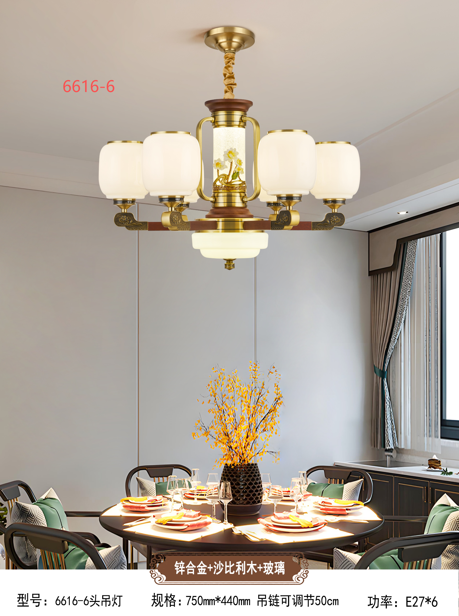新中式吊灯 > T-6616锌合金系列